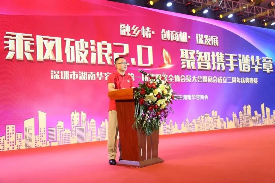 2020年11月28日,深圳市湖南華容商會第一屆第四次全體會員大會暨商會成立三周年慶典活動在東莞鳳崗嘉輝會酒店隆重舉行,深圳市的華容知名鄉(xiāng)友、華容縣相關(guān)領(lǐng)導(dǎo)、商會顧問、商會領(lǐng)導(dǎo)及全體商會企業(yè)會員、來自社會各界的華容鄉(xiāng)賢、企業(yè)家、兄弟商會代表等400多人參加大會。
